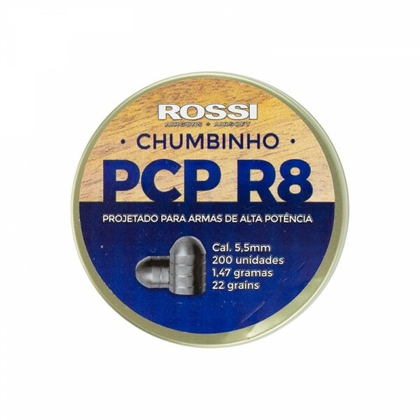 Chumbinho para Carabina de Pressão PCP no calibre 5.5mm (.22) desenvolvido pela Rossi para uso na Carabina PCP R8 e em outras PCP de alta potência.
