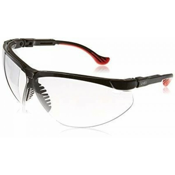 Óculos de segurança com lente de proteção em policarbonato com tratamento antirrisco, antiembaçante e UV, protetor nasal injetado do mesmo material e haste tipo espátula