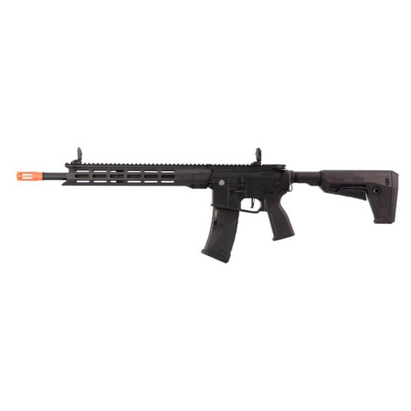 O rifle conta com um stock ajustável tipo PDW e um grip ergonômico, proporcionando maior conforto e controle durante as partidas prolongadas. O seletor de disparo ambidestro e o sistema de magazine release tornam a arma acessível para destros e canhotos.