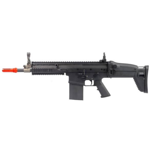 O We Scar H Airsoft Combate das Forças Especiais ou SCAR é um rifle fabricado pela Fabrique Nationale de Herstal, para o Comando de Operações Especiais dos EUA (SOCOM) para satisfazer os requisitos da competição SCAR. Esta família de rifles consiste em dois tipos principais.O Mk.16 SCAR-L (luz) é compartimentado no cartucho NATO mais leve de 5.56x45mm enquanto o Mk.17 SCAR-H (pesado) dispara o cartucho OTAN mais pesado de 7.62x51mm. Em particular, o Mk.17 ainda está sendo adquirido para operações especiais. Onde a plataforma confiável para a maior potência 7,62 milímetros se mostra mais eficaz para a luta a longa distância.